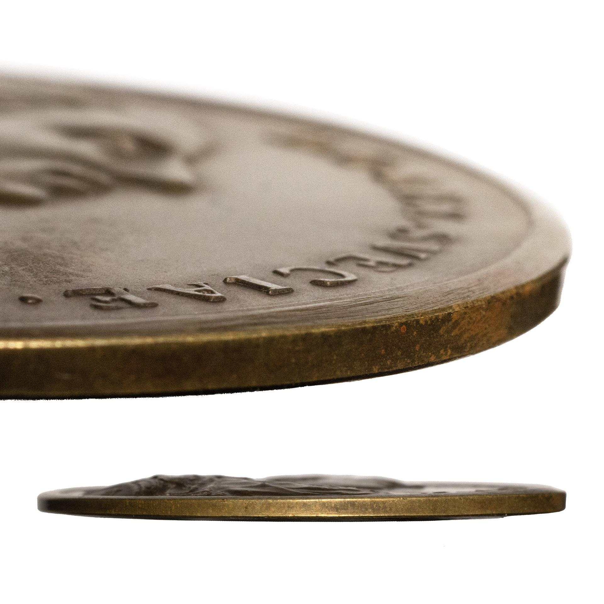 Vacker välbevarad medalj med mörk fin patina och glans, små märken. Tunn medalj, vilket eventuellt innebär en senare tillverkning. Kanten är en aning fasad. Enligt Hildebrand så hämtade gravören Arvid Karlsteen inspiration till medalens motiv från antika romerska mynt. Framställningsår för originalmedaljen 1708.